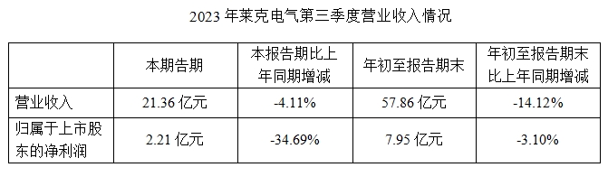第三季度实现营业收入21.36亿元,同比下滑4.11%;归母净利润2.21亿元,同比下滑34.69%;扣非归母净利润2.25亿元,同比下滑30.83%。