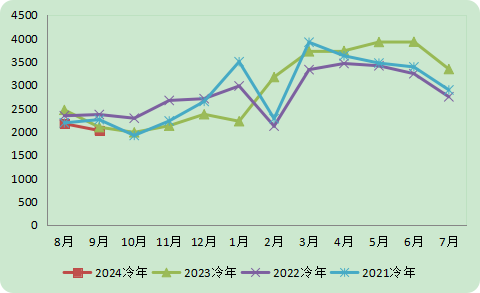 图2021-2024冷年空调电机内销走势(万台)