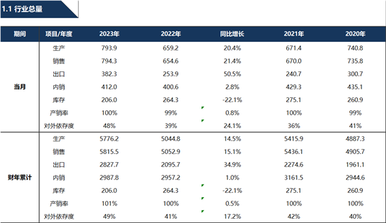 9月,洗衣机总产量为793.9万台,同比增长20.4%。总销量为794.3万台,同比增长21.4%。其中内销量为412万台,同比增长2.8%。外销量为382.3万台,同比增长50.5%。