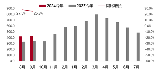 外销来看,海外终端去库存节奏放缓后,叠加同期低基数的影响,外销订单持续恢复性增长,汇率下调以及航运价格回落也给空调出口市场的增长带来了正向的贡献,有利于出口市场的逐渐恢复。海外订单的增长除了需求的回暖外,产品迭代升级与产品的提升也未中国空调出口带来了优质的增长。当下,空调大盘在出口市场的支撑下保持着相对的稳定。此外,国外市场的“黑五”狂欢,也将对海外订单增长有正向促进的作用。当前需求回暖给行业带来了正向的反馈,但是海外市场的需求增长仍然面临诸多挑战,海外市场是否能够保持长期增长仍然存在变数。