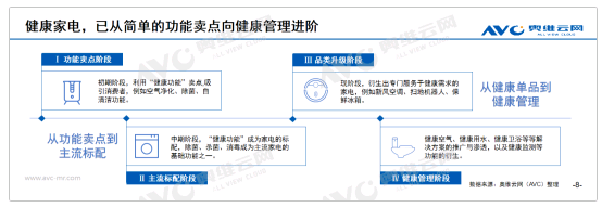 在健康需求繁荣发展之际,再回看健康家电的发展历程我们不难发现,健康家电早已从功能卖点发展到主流标配,从健康单品发展到健康管理解决方案。