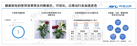 其次,健康家电带给用户的使用体验和改变也将进一步走向数据化和可视化。例如通过消毒效果等级的方式、通过对比实验再进行直播或视频互动分享的方式,通过屏幕数显的方式,以及通过权威、专业机构背书或者极端使用环境体验背书等等方式。