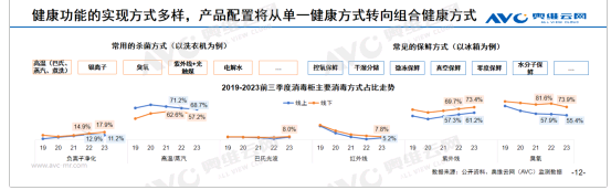 首先,健康功能的实现方式多种多样,我们以消毒柜为例,消毒方式有负离子净化、高温蒸汽、巴氏光波、红外线、紫外线、臭氧等多种,健康家电产品对于健康实现方式的搭载会日益多重化,即产品配置从单一健康方式走向组合健康方式。