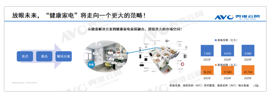 最后,在健康家电解决方案之上,其实还存在着更大的蓝海市场,那就是健康家电家居一体化。我们知道,家电行业的年度零售规模约在8000亿左右,而家居市场的规模约为4万亿。放眼未来,“健康家电”或将迈向一个更大的需求范畴、一个广阔的发展空间!