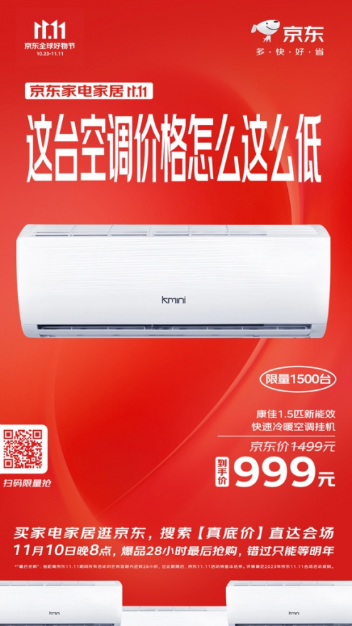 寒冷的冬日,对于南方小伙伴来说离不开一台能带来温暖的空调。康佳1.5匹新能效快速冷暖空调挂机,水波纹面板,颜值经典,并采用双层导风板,立体送风舒适。不仅支持一键eco节能,还可实现快速冷暖(30秒速冷60速热),轻音运行不打扰,为您冬季的入睡营造温暖舒适又宁静的惬意氛围。11月10日晚8点下单限时立减500元到手价999元。