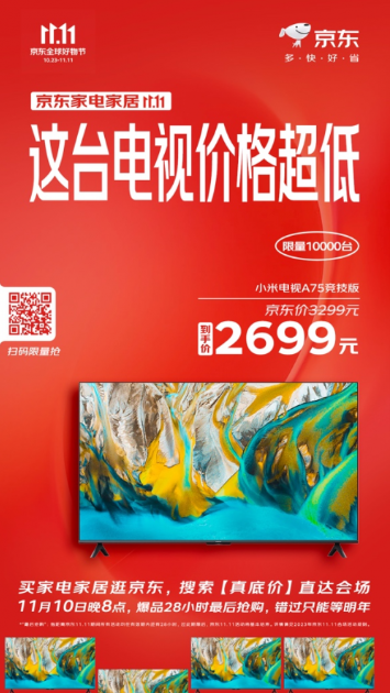 居家的娱乐生活离不开电视,一台好的电视能带来无比愉悦舒适的视觉盛宴。小米电视A75竞技版,具有2+32GB大内存空间以及120Hz高刷新率,带来前所未有的低疲劳的视觉感受,11月10日晚8点下单限时立减600元到手价2699元,下单还可享3期免息。