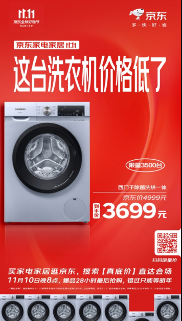 如果你家阳台较小,可以选择西门子除菌洗烘一体机,不仅可以60分钟完成智能洗烘,还具备自然热风除菌除螨功能,除菌率高达99%,11月10日晚8点下单立减1300元到手价3699元,还可享受6期免息福利。