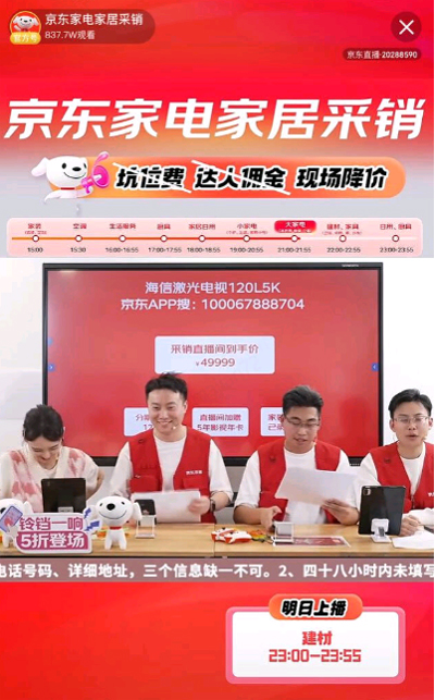 除了海量质优价低的家电商品广受欢迎,京东11.11期间,“不收坑位费、不收达人佣金,就是更便宜”的京东采销官方直播间也火爆出圈。数据显示,京东11.11期间,京东家电家居超400人次成为带货“主播”,直播间总观看人次达到4000万以上,单场最高观看人数超1000万,为消费者带来家电、家居、房产等5折爆款福利。20余款商品在直播间的成交额都达到100万元以上。正基于采销人员的专业讲解和超便宜的价格,空调、取暖器、家用洗地机等是消费者在直播间购买最多的商品品类。格力1.5匹云佳空调、酷开Max100、海尔新风1.5匹空调、戴森V8无绳吸尘器、海尔纤美376洗烘套装等成为爆款商品。
