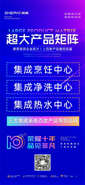 十年硕果累累,道路宽广,历经十载风华,如今的浙派依然在不断加快开疆拓土的品牌步伐。从专注产品到着眼厨房整体的品牌战略跃迁,这是对自身优势的自信,亦是对未来厨房发展的预判,从中也看到了浙派的无限可能。