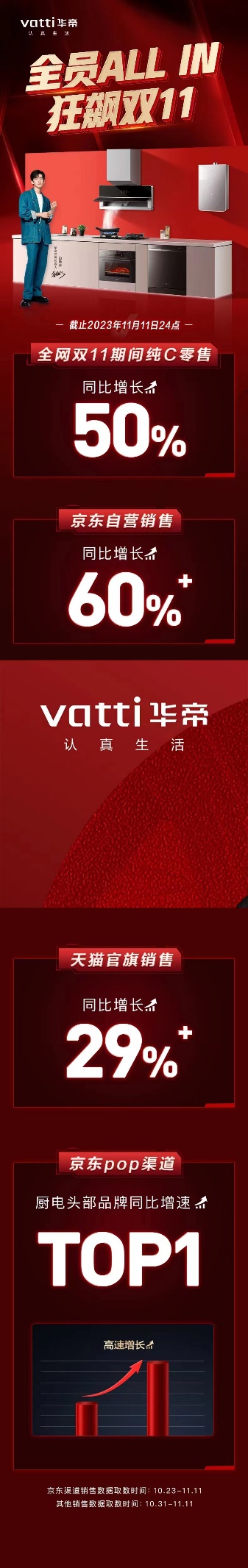 虽然厨电品类在本届双11表现一般,但是头部企业的表现可圈可点。