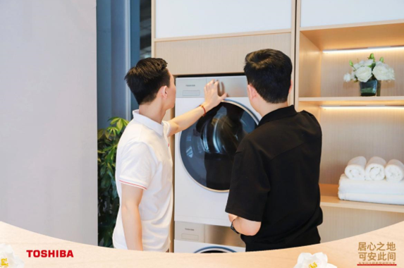 现场备受瞩目和欢迎的东芝大白梨纯平全嵌洗烘套装惊艳亮相,以纯平全嵌之美,诠释净柔之道。东芝大白梨纯平全嵌洗烘套装,创造性将极简美学注入产品基因,以纯平之美,重构生活居心地。其产品机身平整嵌入柜体不凸出,颜值优雅,质感细腻,带来至臻至简的纯平外观。同时,纤薄身姿嵌隐于形,可完全嵌入600mm主流家装柜体,并且15mm微缝嵌入精妙契合,可融入多种家装环境,释放更多家居空间,将为用户带来井然有序的精致生活新体验。