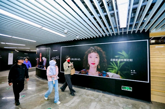 在青岛延安三路、五四广场的地铁站内,海信电视就通过记录用户瞬间的艺术海报,把一幅幅“人世间”搬到了走廊四壁。在这里,你能看见34岁退役田径运动员、25岁的重庆涪陵女孩、85岁的退伍老兵,甚至正在热恋的年轻情侣,不同年代的人正对镜头的喜怒哀乐,诠释着对生活岁月最饱满的情感。