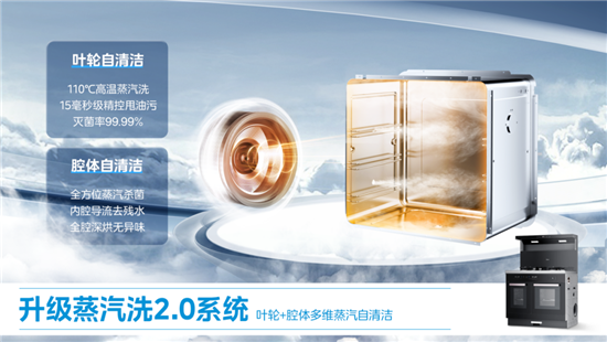 蒸汽洗技术自推出以来,就得到了消费者的广泛认可。美的也在不断探索、尝试,优化集成灶的自清洁体验,从原来解决烟机叶轮油污,升级到蒸烤箱去异味、除水垢难题,实现风机叶片+蒸烤箱内胆多维自清洁,解放双手的同时,清洁更全面。蒸汽洗2.0把蒸的功能更加充分地利用起来,通过高温蒸汽将残留在蒸烤箱内胆壁面上,产生腥味的三甲胺等物质去除;再通过内胆的自排残余积水设计,排走腔内残留水,并启动加热模式烘干腔体,保持内胆清爽无异味。美的集成灶蒸汽洗2.0通过多维自清洁,大大降低了在清洁琐事上消耗的精力和时间,把更多时间留给家人,享受惬意烹饪的乐趣。