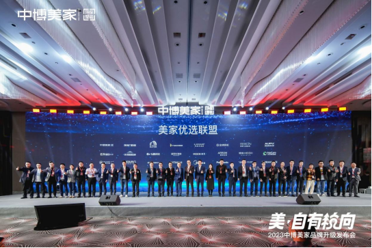 爱康企业集团(上海)有限公司总裁林王柱、德华兔宝宝装饰材料销售公司家装运营总经理雷翔波、德国亚的斯集团邓禄普业务全国销售总监李瑞前、东方雨虹全国大客户总监王培、金牌厨柜家居科技股份有限公司副总裁陆继毅、马可波罗控股股份有限公司副总裁刘晃球、杭州德意智家股份有限公司营销总经理阮金成、奥普家居股份有限公司家居集成事业部总经理汪纪纯、上海龙胜实业有限公司总经理刘小龙、广东东鹏控股股份有限公司整装市场中心总监梁棋斌、杭州诺贝尔陶瓷有限公司整装事业部总监吴燕能、摩恩厨卫有限公司整装事业部总监李萍、箭牌家居集团股份有限公司家装事业部总经理贾冬启、恒洁卫浴集团有限公司家装事业部大客户总监李培、大自然家居(中国)有限公司浙江分公司总经理蒋海平、书香门地(上海)商贸有限公司整装渠道总监张旭、北京TATA木门集团整装渠道总监冯建玺、西蒙电气(中国)有限公司整装事业部总经理曹广宏、青岛海信日立空调营销股份有限公司杭州分公司总经理荣楠、美的集团杭州运营中心家中总经理李部辉、杭州松下家用电器有限公司浙江分公司总经理董丽剑、杭州中冠电器有限公司总经理陈雪娟、老板电器家装事业部大客户总监舒来、海信集团中国区杭州营销中心总经理陈阳、顾家家居杭州零售事业部总经理朱成欢、迪欧空间董事长陈勇淼、喜临门家装渠道总监李倩皓、索菲亚装企渠道部总监黄武、莫干山家居董事长唐远明、嘉兴至爱科技董事长翁国华、都驰高定华东运营总监杨坤共同上台开启美家优选联盟成立仪式,中博美家环保整装以用户的角度出发为更多业主创造家的美好。