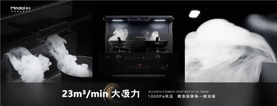 美多语音集成灶热款F16系列拥有23m³/min的持久强劲大吸力,1000pa静压,瞬吸油烟,让厨房保持清新空气不油腻,摒弃了传统烟机的过滤油网,采用纳米黑晶玻璃台面和烟腔,清洁不再繁琐。