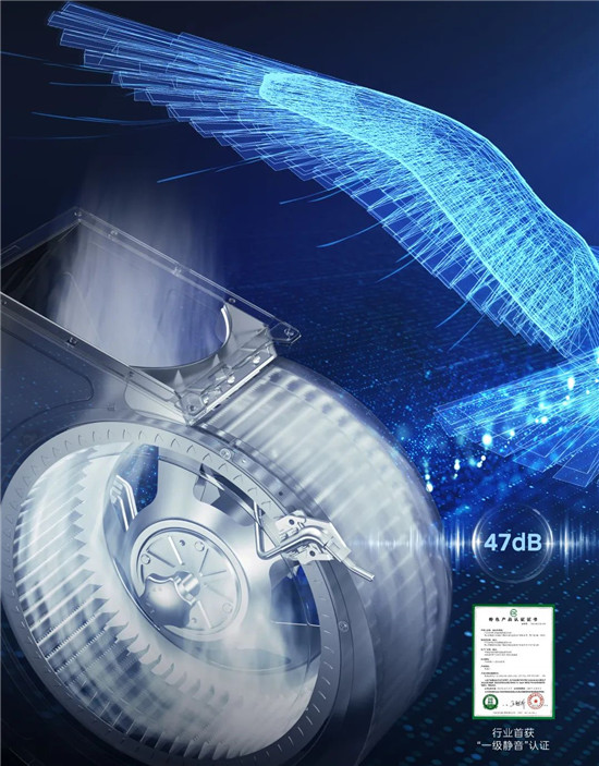 美的无烟感集成灶搭载镜像直排风道,创新研发仿生凹型蜗舌设计,让进风气流相位错开改善气流流动均匀性,有效降低冲击噪音;并通过仿生羽翼叶轮,模仿鸟类翅膀的前缘和尾缘的结构形成锯齿切割气流,减少气流碰撞,运行中噪音低至47 dB。美的集成灶主导制定了行业首部《集成灶噪声分级评价规范》标准。同时,美的集成灶JJZT-J50、JJZT-LS3、XJJZT-Y36、JJZT-SP3获得了北京中轻联认证中心(CCLC)颁发的行业首个《一级静音》认证。