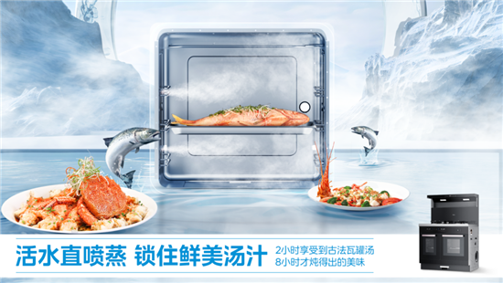 美的集成灶还搭载中式蒸烤专利技术——活水直喷蒸®,该技术由美的烹饪营养实验室联合华南理工大学、南京农业大学、北京工商大学联合研发,通过对温度、湿度、时间的精准掌控,持续提升蒸烤技术。