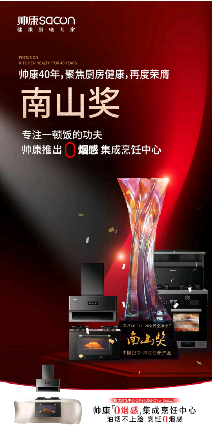 聚焦厨房健康,帅康荣获南山奖