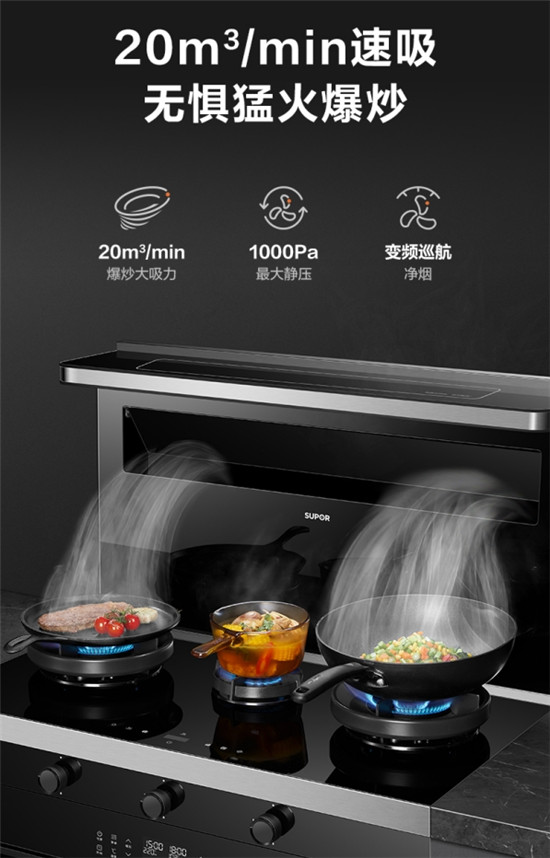 苏泊尔UQ77集成灶也充分考虑到了这些困扰,从产品设计之初就进行优化,加强UQ77集成灶的能动性,减轻用户的操作负担。
