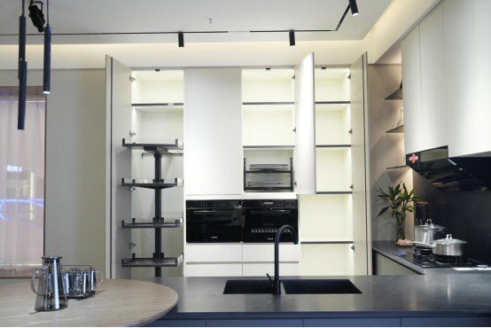 丽博家居厨房的设计常常以开放式厨房为主,增加岛台的设计,让做饭成为生活,而不是“工作”。作为年轻人的社交新场域,这里展现的不止一日三餐,还有生活的品味。因此在设计时,丽博家居设计师会充分考虑社交体验感,拉进烹饪者和用餐者的距离,增添烹饪情趣,提升幸福感。