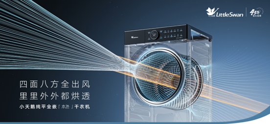 此外,在烘干方面,针对传统烘干机“烘不干、烘不透”的用户痛点,小天鹅创新研风6D气流烘技术,通过全域风、穿透风、拍拍风三种出风模式,强力穿透衣物,无论是难烘干的大件衣物,还是容易跑绒的羽绒服,都能轻松烘透,还原衣物干爽原貌,做到“四面八方全出风,里里外外都烘透”,更好的满足用户多场景烘护需求。同时还搭载专业全变频技术,可以实现全家衣物59min速烘,整体性能效率提升30%,让全家日常换衣衣物烘干不用愁。