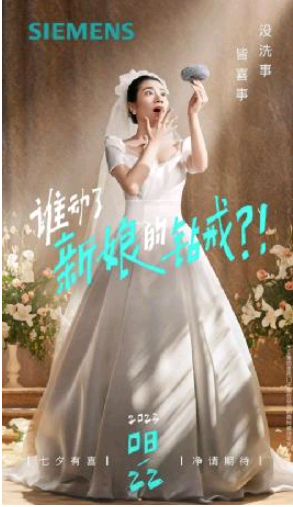 相比于常规“520”、七夕活动以浪漫创意为主基调,西门子家电创新性以“喜事”与“洗事”巧妙谐音建立联想,构建新婚氛围与家务烦恼的冲击,先抑后扬,吸引用户关注。故事篇章中,西门子家电通过“钢丝球戒指”“洗碗三连问新婚誓言”等创意叙述,戏剧性地展示一场“洗碗恐惧症”的婚礼背后,新婚夫妻对于“碗”后余生的忌惮,而新婚必备好物西门子洗碗机的登场,则有效助力新婚群体开启三餐四季,无惧“洗事”的幸福之旅。