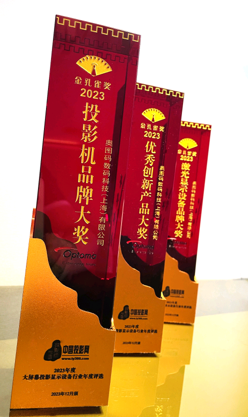 在刚刚落下帷幕的,一年一度大屏幕投影显示行业“奥斯卡”--2023视听行业高峰论坛暨金孔雀颁奖典礼上,奥图码(中国)不负众望,斩获三项年度大奖——