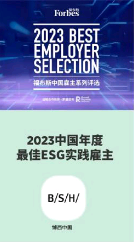 博西中国荣获福布斯“2023中国年度最佳ESG实践雇主”