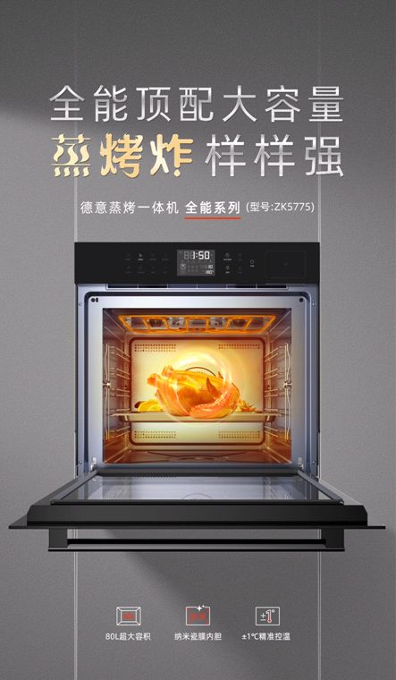2023年,德意电器推出了一系列表现亮眼的厨电新品:黄金套餐A6Pro烟机+Z5Plus灶具、三𡘙集成灶、德意黑骑士(838A)烟机、德意灰小T(825A)烟机、蒸烤一体全能系列等,以更好的性能,更便捷的操作,更智能的体验,引领人们迈向更美好的厨房生活。