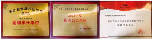 2023年2月,德意智家再次连任浙江省家具行业协会副理事长单位,并被授予“优秀会员企业”称号。