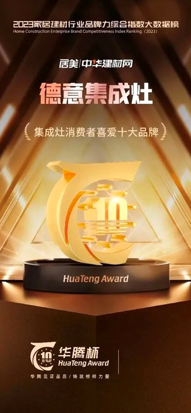 2023年9月,德意电器凭借全球领先的智能化生产水平、富有原创力和设计力的集成灶产品以及良好的市场口碑,荣获“集成灶消费者喜爱十大品牌”。