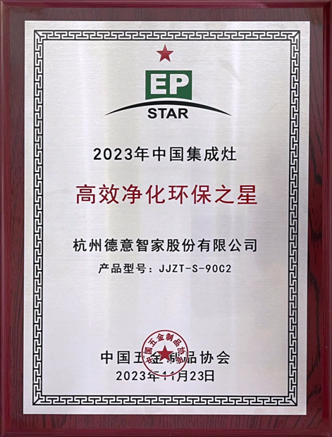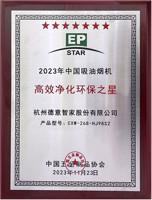 2023年12月,德意智家再获“高效净化环保之星”荣誉称号,引领行业绿色发展。