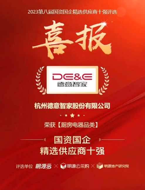2023年12月,德意智家强势入围“国资国企精选供应商十强(厨房电器品类)”。