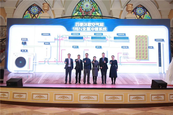 住建部科技与产业化发展中心处长丁洪涛,中国节能协会副监事长、热泵专委会常务副秘书长赵恒谊,中国建筑科学研究院中心副主任徐昭炜,上海交通大学教授翟晓强及其团队,哈尔滨工业大学教授倪龙,采筑电商平台产品中心总监刘继忠及其团队,中关村现代能源环境服务产业联盟秘书长李清举,住建部科技与产业化发展中心正高级工程师王珊珊,日出东方慈善基金会主席吴典华,四季沐歌集团总裁李骏、副总裁徐国栋等领导、嘉宾,四季沐歌空气能用户代表、经销商代表、工程商代表和新华网、央广网、中新社、慧聪网、热泵市场、V客传媒、温度新媒等重要媒体代表齐聚一堂,共话热泵行业的美好前景与未来。四季沐歌的新产品、新技术悉数亮相,开启了四季沐歌高质量发展的新阶段。