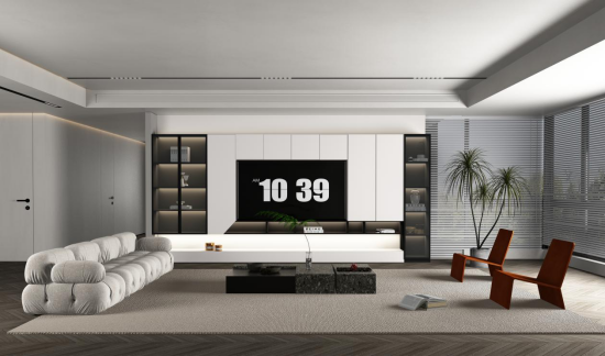 客厅 客厅是家庭生活的重要场景,承载着与家人的美好欢聚时光,传统的客厅都是千篇一律的沙发、茶几加电视老三样,似乎成了生活的固定框架。而现在客厅变得更加多样化,像「自由时光」的客厅,它更像是一个多功能场所,朋友经常来聚会、打牌、品茶等等,甚至还可以一起看电影、打游戏,给人更多的体验感。