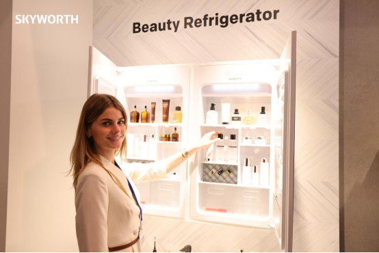 创维带来的美妆冰箱,不仅容量充足,实现充分收纳,而且通过隐藏门把手等创新设计,完美嵌入镜面柜,更在照明光线、储存温度等方面实现人性化。
