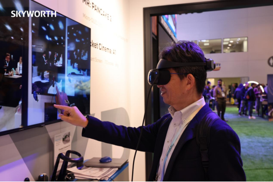 二、创维首款MR(混合现实)新品亮相,从虚拟拉回现实 在5G、AI等前沿科技的飞速发展下,创维集团前瞻布局虚拟现实与增强现实产业,满足人们对未来智慧生活的无限想象,在CES2024期间首次展出创维MR新品PANCAKE 2,把人们从虚拟中拉回到了现实,这是创维XR空间计算设备的代表性产品,其对标苹果Vision Pro,采用了单眼4K Micro-OLED屏,双眼8K分辨率,这也是全球第二款、中国第一台单眼4K MR产品。