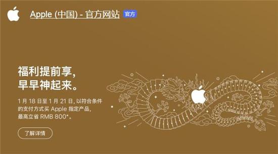 1月15日,苹果官网发布“新春优惠”促销信息称,1月18日至1月21日,消费者以符合条件的支付方式购买指定产品,最高可降价800元。