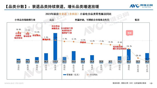 同上所述,厨房小家电在2023年的整个销售过程中受到高基数影响需求表现相对理性。理性的表现主要呈现两个特点。
