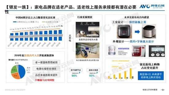 我国是世界上老年人口规模最大的国家,从长期来看,我国将面临着不可避免的老龄化需求逐年增加的趋势,“银发经济”的发展速度也将越来越快,成为家电行业核心关注的方向之一,那么从目前银发家电发展情况上来看,大家电行业里我们看到已经出现很多专门为银发一族设计的产品例如:适老电热水器、防干烧燃气灶、适老4K电视等智慧家居全养老场景产品设计。那么对于厨房小家电而言,未来也有几个方向值得关注: