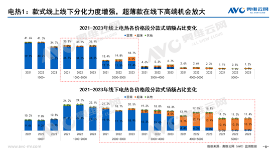 电热产品结构方面,款式的升级依然是主旋律,但是在线上线下的倾向出现了分化,超薄款显著带动了线下的价格段上移。