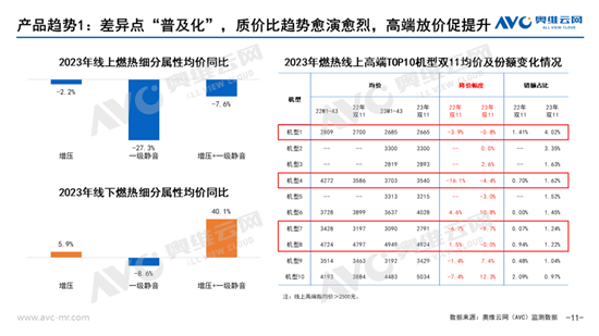 热水器整体的产品趋势方向,呈现差异化卖点的“普及化”,具体表现为增压和一级静音等体验型功能均价大幅下滑,功能的叠加更严重的价格“内卷”。一方面,需警惕市场面临产品同质化的风险,而另一方面,高端产品的放价也促进了产品份额的增长,不仅是品牌的增长机会,也有效促进了行业高端化。