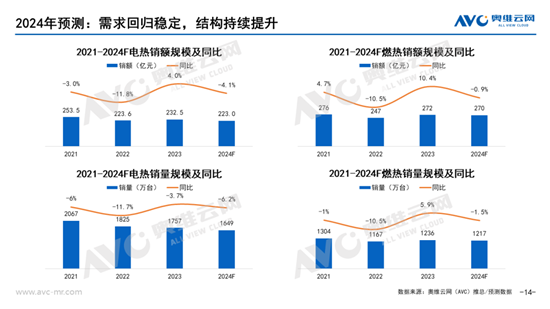 对于热水器市场的未来发展,预计会在2023年复苏后回归稳定,销量在高基数下小幅下滑,但参数升级和品质化升级的态势仍会延续下去。