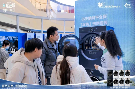 此外,小天鹅还在这些城市打造【自然源力体验空间】,吸引了人们到现场体验互动。活动现场通过呼吁大家加入“自然色彩守护计划”,捐助蓝丝带海洋保护协会,一起为公益环保助力;设置自然色彩守护计划科普墙,提升人们对自然的保护意识;同时小天鹅还带来纯平全嵌本色洗烘套装,以沉浸式产品场景化体验,让人们感知自然色彩与科技的融合,解锁自然护色的奥秘。