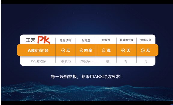 采用ABS封边条+PUR无痕封边材料及工艺