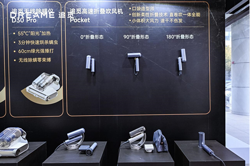据追觅科技工程师介绍,追觅Pocket折叠高速吹风机的“柔性折叠技术”在技术层面实现了创新,通过根部折叠使手柄可以在0°-180°自由弯折。整机折叠后仅有手机大小,机身重量仅300g。在人体工学弧线设计的加持下,整机不仅配重平衡,而且握感舒适,非常适合随身携带。