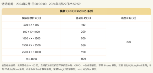 目前,OPPO Find N3系列在OPPO商城都支持以旧换新服务,用户可以拿手头闲置的手机抵扣一部分购机价格。