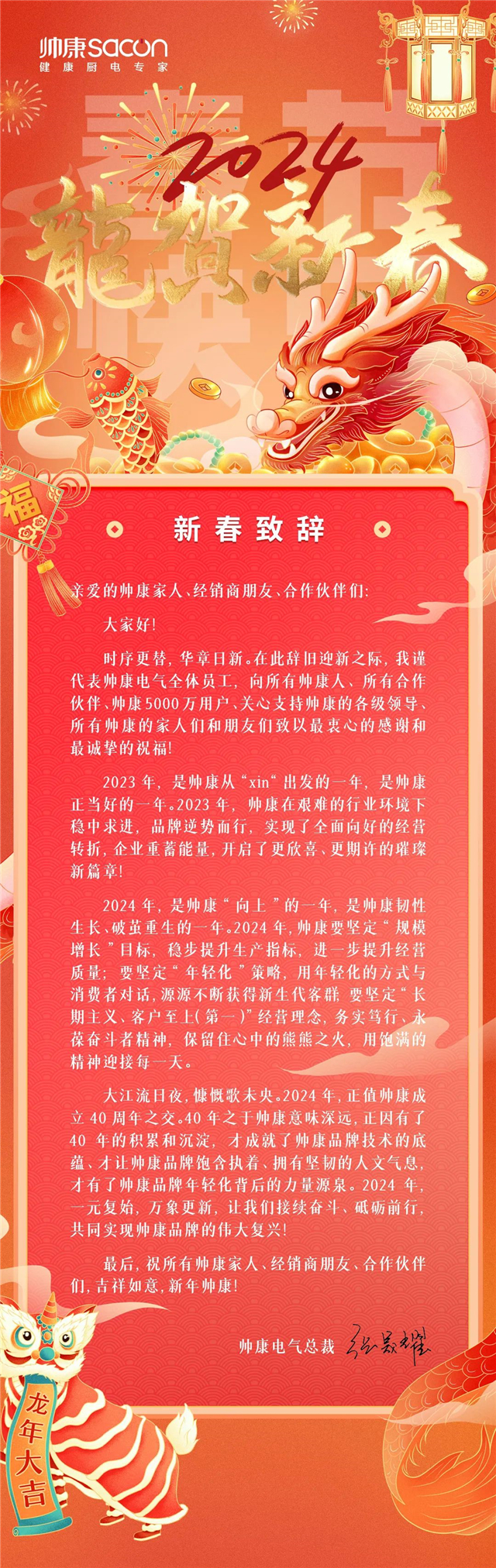 首页 > 新闻 > 帅康电气总裁张晟耀新春致辞:韧性生长、破茧重生