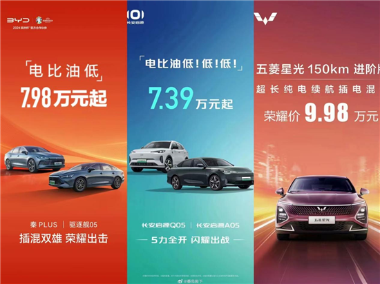 2月19日晚8点25分,长安汽车同样在微博发出海报,“电比油低!低!低!”同时宣布长安启源Q05和长安启源A05售价7.39万元起。