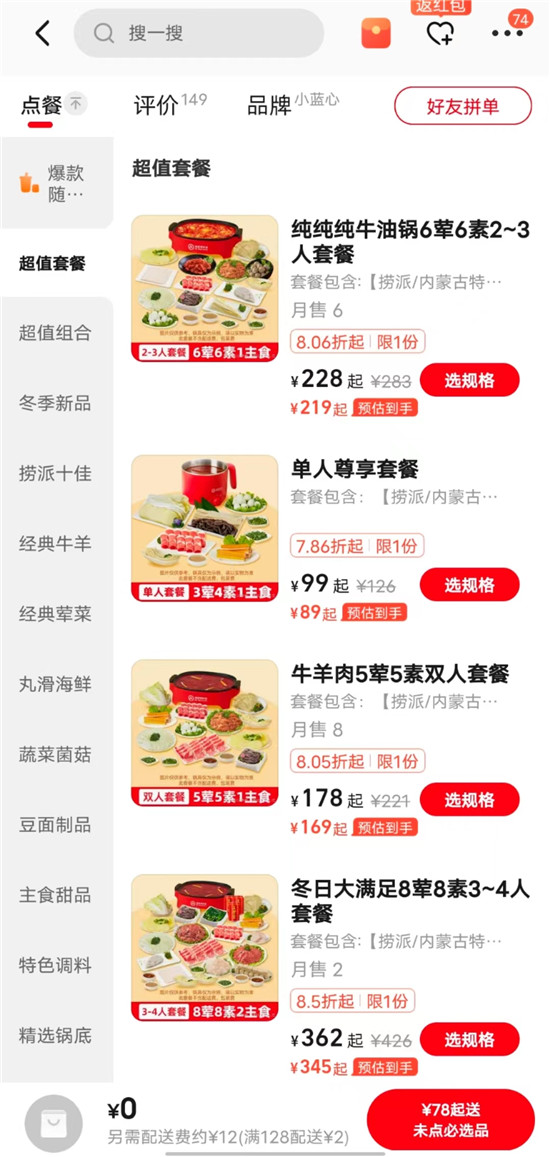 值得注意的是,小熊的电煮锅在海底捞的套餐中,价格相对还是比较贵的。